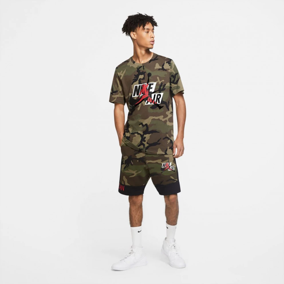 Jordan Jumpman Classics Ανδρική Κοντομάνικη Μπλούζα MEDIUM OLIVE/CAMO PRINT/GYM RED
