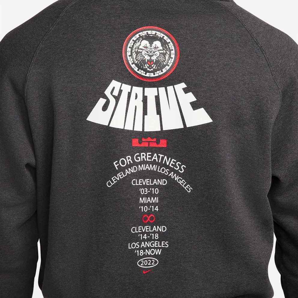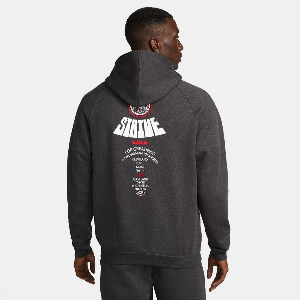 Το σύνθημα του LeBron είναι “Strive for Greatness” και αυτή η μπλούζα με κουκούλα από απαλό φλις σε προσκαλεί να μεταφέρεις αυτό το μήνυμα μαζί σου, όπου και αν βρίσκεσαι. Διαθέτει εξαιρετικά φαρδιά γραμμή για αξιόπιστη ζεστασιά, αλλά και σχέδια πίσω αφιερωμένα στην ένδοξη καριέρα του Βασιλιά που συνεχίζει ακάθεκτος.